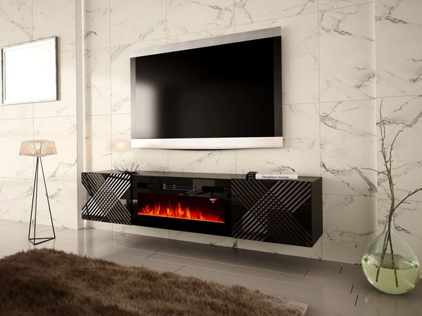 TV ormarić/stolić s električnim kaminom Madrealla 2D (crna + crna sjajna)