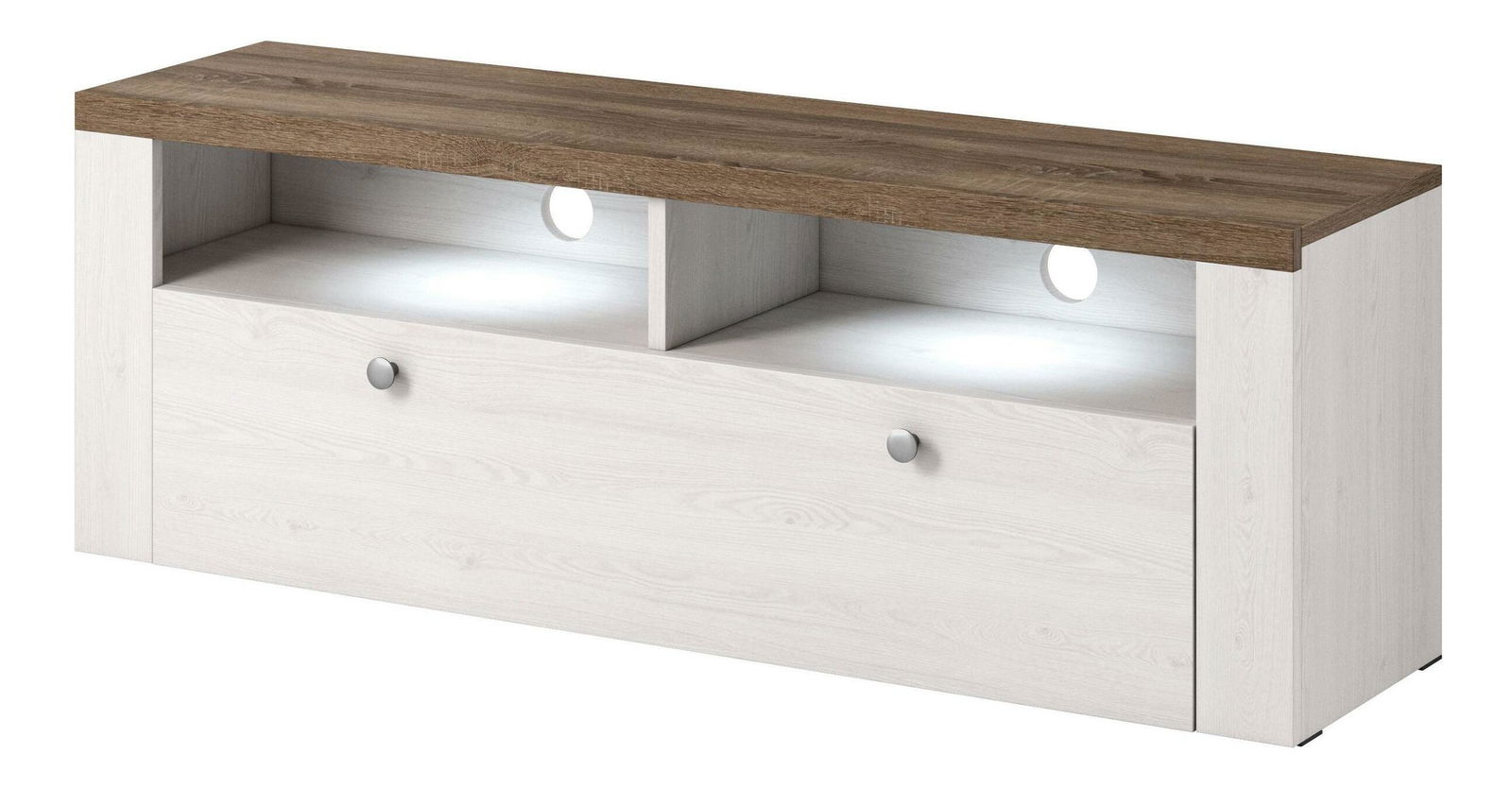 TV stolić s dva otvora za AV opremui ladica sa zglobnim vratima na dnu. Namještaj u prirodnom stilu iz serije Larita, pogodan i za dnevni boravak i za radnu sobu.
