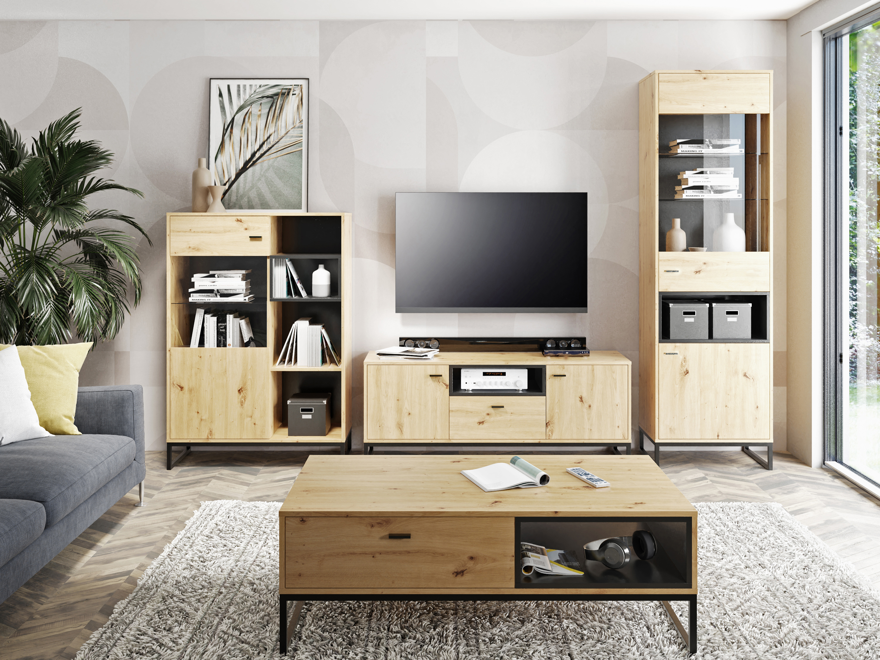 TV stolić Oliver RTV (hrast artisan + crna mat)