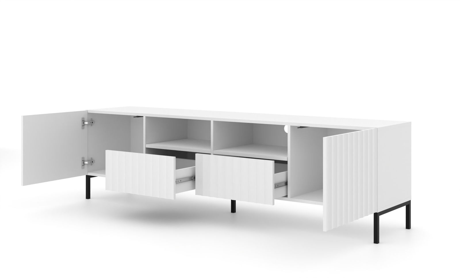 PrikazKolekcija sadrži TV ormarić širine 200 cm, prikladan za pohranu i smještaj i najnovijih i najvećih modela televizora. Dvokrilni namještaj ima 2 police i 2 ladice. TV ormarić opremljen je sustavom bez ručkica – fronte se otvaraju sustavom push-to-open.