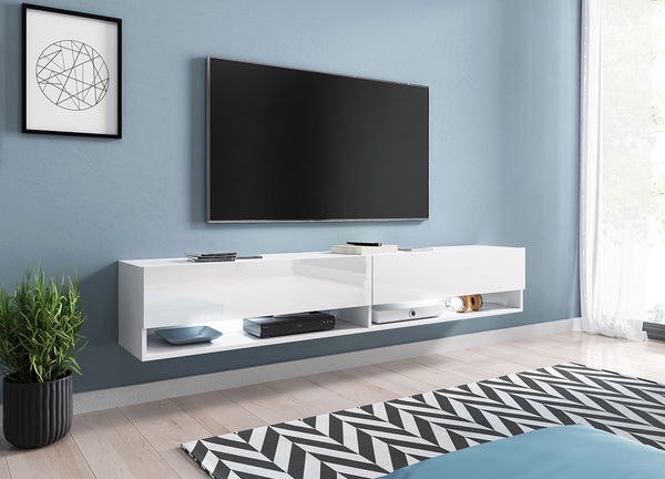 TV stolić/ormarić Aldesia 180 (bijela + bijeli sjaj) (led rasvjeta rgb šareno)