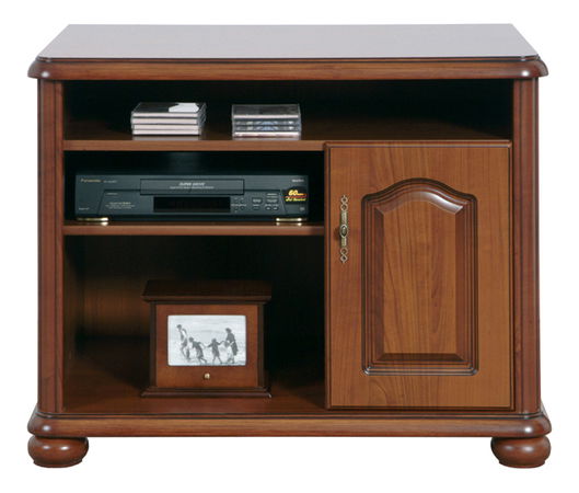 Uži TV stolić rustikalnog dizajna s policama za AV uređaj, DVD filmove ili dekoracije.