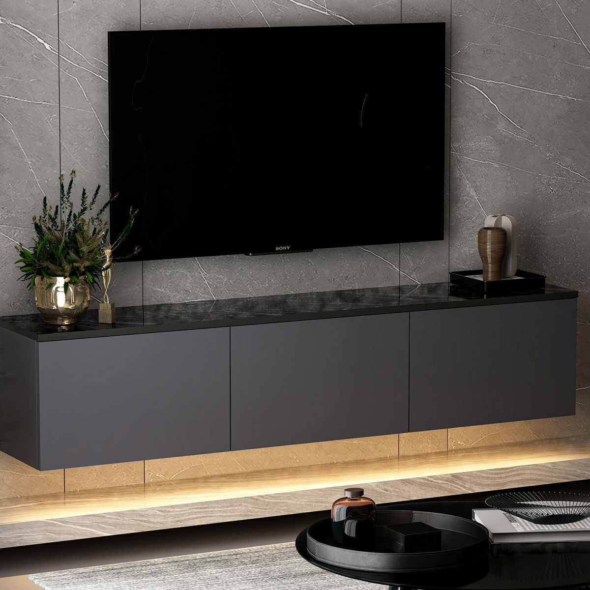 TV stolić/ormarić - Neola (antracit) je idealan dodatak za vaš dnevni boravak. S visinom od 35 cm, širinom od 160 cm i dubinom od 32 cm dovoljno je velik za smještaj vašeg televizora i drugih uređaja. Izrađen od visokokvalitetne 100% melaminske ploče, ovaj TV stolić/ormarić je izdržljiv i lako se održava. Njegova elegantna antracit nijansa dodaje moderan dojam vašem interijeru. S dovoljno prostora za pohranu u obliku polica i ormarića, možete držati svoju TV opremu i druge stvari uredno organizirane. TV stolić/ormarić - Neola (antracit) kombinira praktičnost, stil i kvalitetu za savršeno iskustvo vašeg televizijskog prostora.