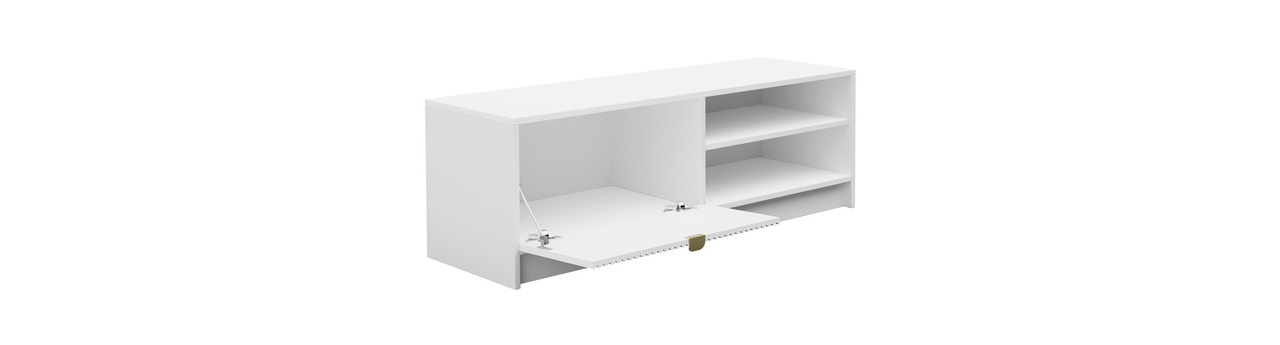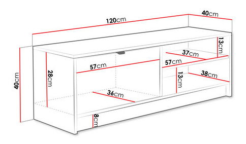 TV stolić/ormarić je idealan izbor za one koji traže udobnost i stil. Savršen dodatak elegantno uređenom dnevnom boravku je ormarić Razimo 1K RTV. Ovaj iznimno dizajnerski model odlikuje se jedinstvenim izgledom koji se sastoji od rebrastog prednjeg dijela i jednostavnog korpusa. Ovaj elegantan komad namještaja dostupan je u neutralnim bojama, zahvaljujući čemu se savršeno uklapa u bilo koji raspored. Simetrični utori na vratima preklopnog ormarića predstavljaju moderan dizajnerski detalj. Namještaj ukrašen na ovaj način sve je popularniji. Još jedna prednost TV ormarića Razimo 1K je njegova visoka funkcionalnost. Zahvaljujući nizu korisnih prostora za pohranu u dnevnom boravku, ovaj ormarić i otvorene police savršeno će poslužiti za pribor ljubitelja kućnog kina ili strastvenih igrača. Dimenzije: širina: 120 cm, visina: 40 cm, dubina: 40 cm Izvedba: korpus: 16 mm laminirana ploča, fronte: 18 mm MDF ploča, rubovi: ABS i melamin, aluminijske ručke zlatne boje, nogice: crni klizači. Jamstvo: 24 mjeseca.