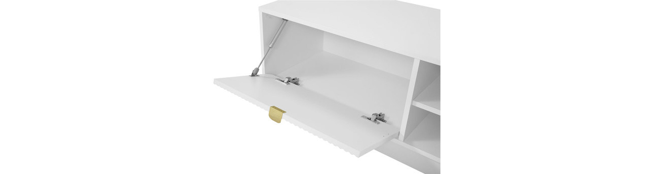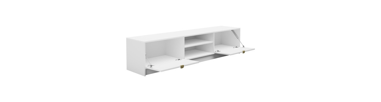 TV stolić/ormarić je idealan izbor za one koji traže udobnost i stil. Stilski i funkcionalan prostor ispod televizora. Sada je to moguće. Zajedno s ormarićem Razimo 2K RTV stvorit ćete svježu i elegantnu zonu. Široki gornji dio nudi mnoštvo dekorativnih mogućnosti. Pustite mašti na volju i stvorite jedinstven raspored. Ormarić Razimo 2K RTV nudi čak dva prostrana prostora za pohranu i dvije police. Zahvaljujući njemu vaš će dom biti uredan i organiziran. Vaše kolekcije filmova, elektronički uređaji i kablovi uvijek će biti na svom mjestu. Ormarić za televizor oduševit će svojim prekrasnim dizajnom. Glodane fronte i zlatne ručke unose u interijer dašak luksuza i prestiža. Dimenzije: širina: 180 cm, visina: 40 cm, dubina: 40 cm. Izvedba: korpus: 16 mm debela laminirana ploča, fronte: 18 mm MDF ploča, rubovi: ABS i melamin, plinski mehanizmi, aluminijske ručke zlatne boje, nogice: crni klizači. Jamstvo: 24 mjeseca.
