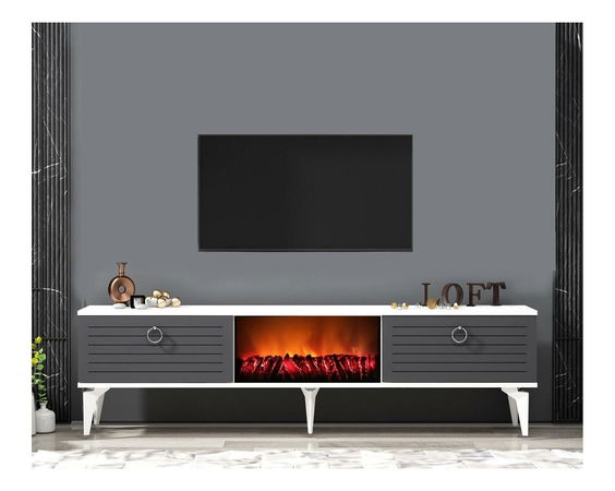TV stolić/ormarić s kaminom Sulotu 2 (bijela + antracit)