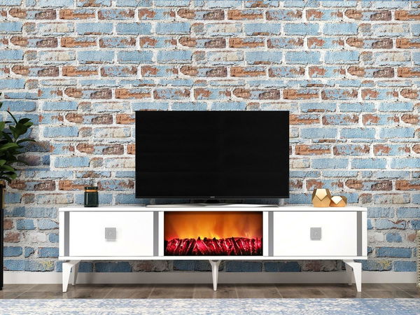 TV stolić/ormarić s kaminom Tobuvu 2 (bijela + srebrna)