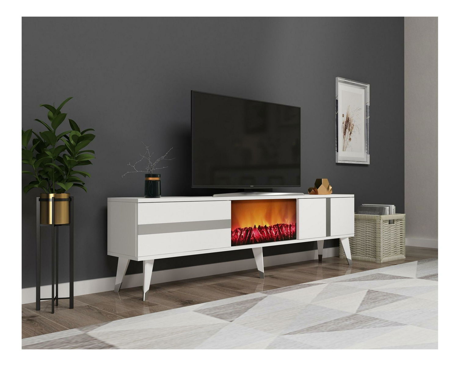 TV stolić/ormarić s kaminom Vekika 3 (bijela + srebrna)