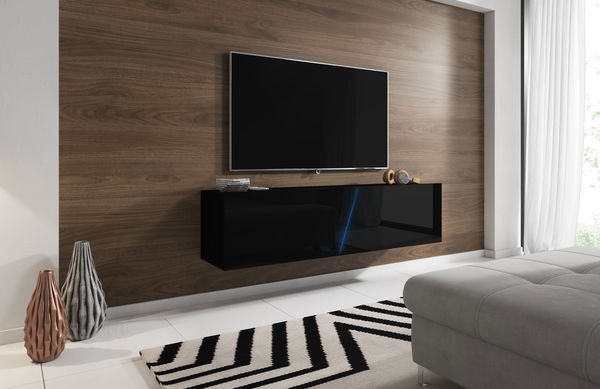TV stolić/ormarić Savanna 160 (crna mat + crni sjaj) (s rasvjetom)