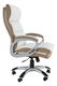 Elegantna uredska fotelja na crnim kotačićima, s presvlakom od eko-kože i plastičnim naslonima za ruke. Nosivost je 110 kg.