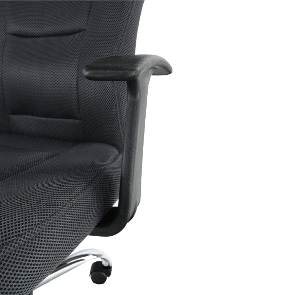 Udobna i ergonomska uredska fotelja jamči zdravo sjedenje tijekom cijelog dana. Dolazi u crvenoj i sivoj boji. Osim podesive visine stolice 116-126 cm, podesivi su i nasloni za ruke. Nosivost do 110 kg.