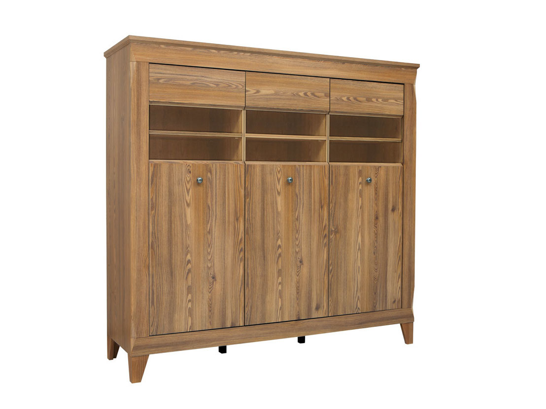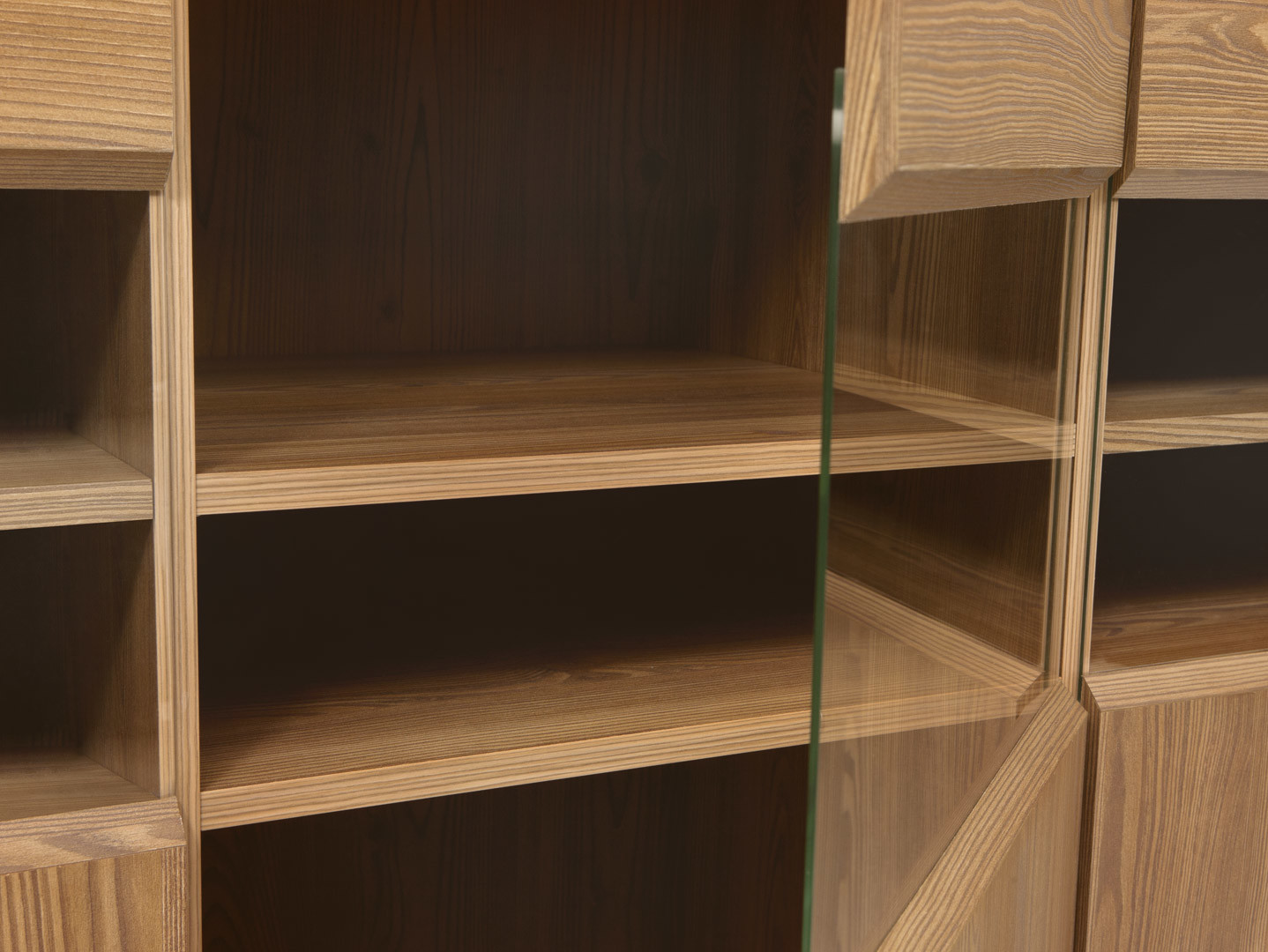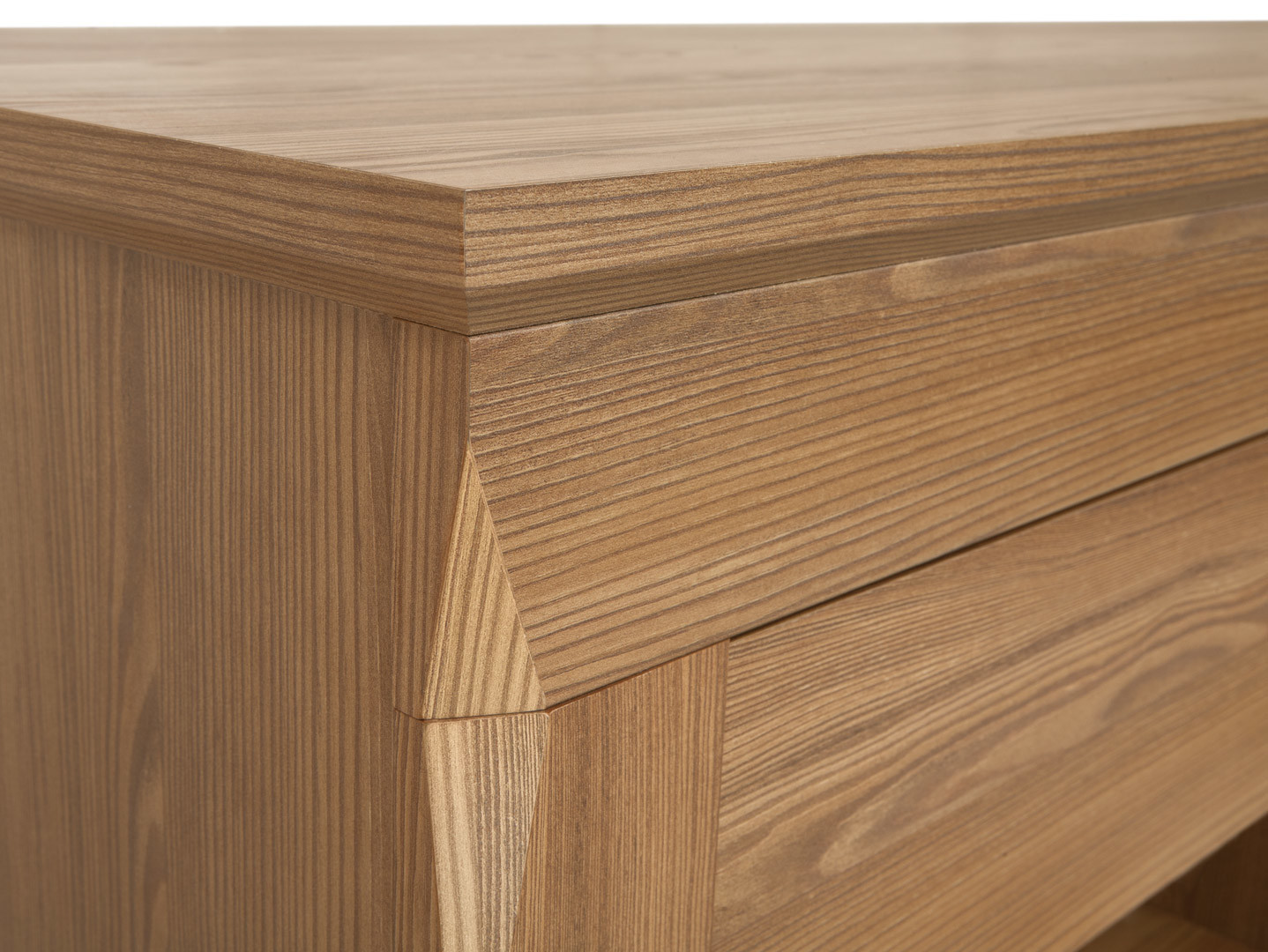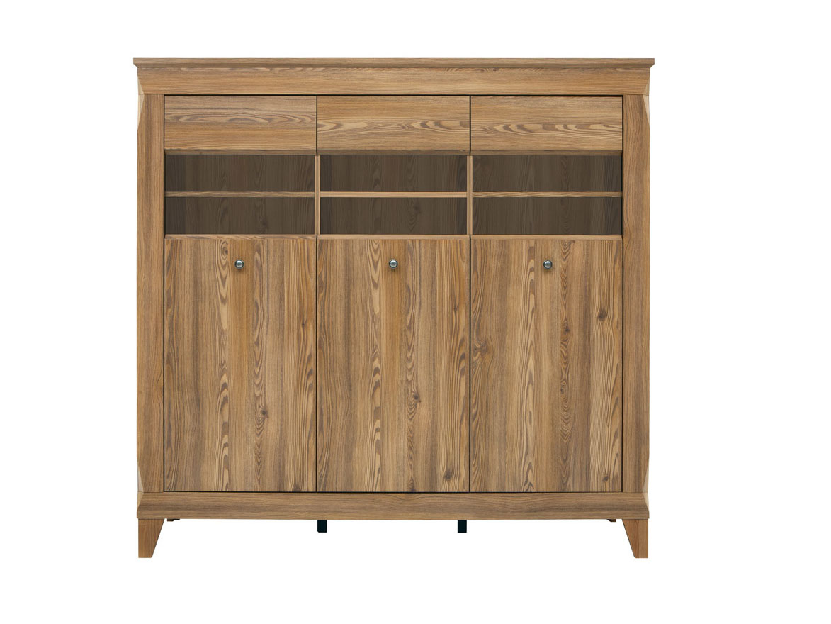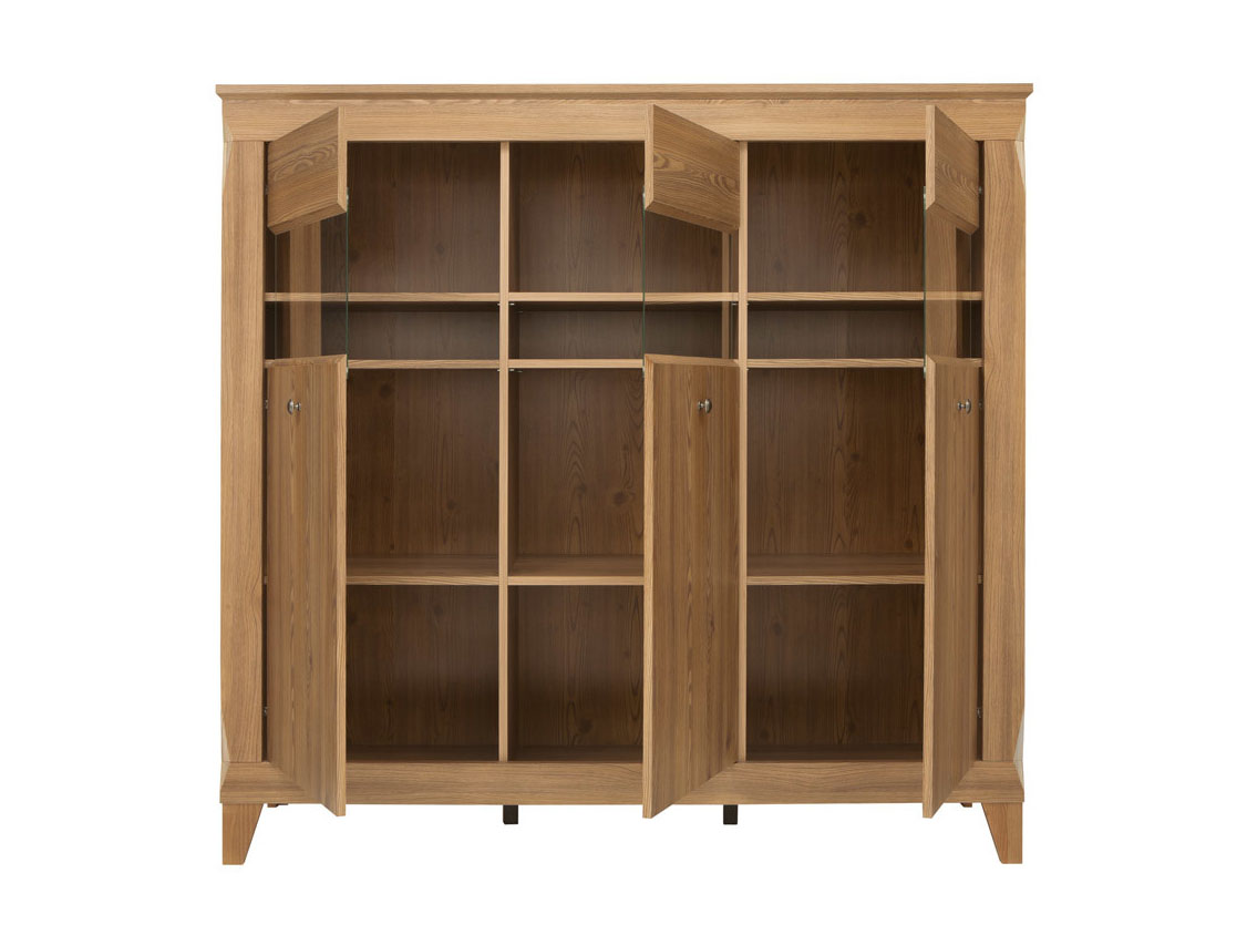 Vitrina Bergen s LED rasvjetom izrađena je od MDF ploča u boji smreka sibiu zlatna.
