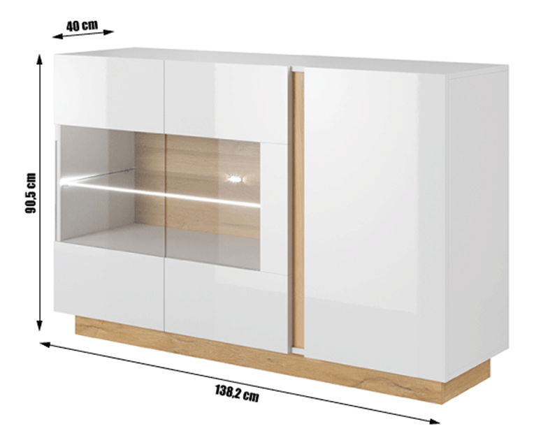 Vitrina Cethos (bijela + hrast grandson + bijeli sjaj)