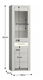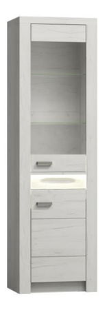 Visoka vitrina Inneas u boji bijelog jasena. U donjem dijelu se nalaze mala vrata, a gornji dio sadrži velika staklena vrata i dvije police. Moguće je dokupiti LED rasvjetu.