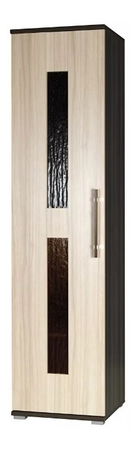 Vitrina ima ostakljene dijelove i dugu usku ručku. Boja jasena u kombinaciji s tamnim jasenom.