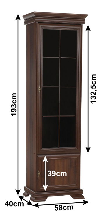 Uska vitrina Kraz s ostakljenim vratima postat će prekrasan detalj u vašem dnevnom boravku, blagovaonici ili radnoj sobi. Isporučuje se u boji Samoa king.