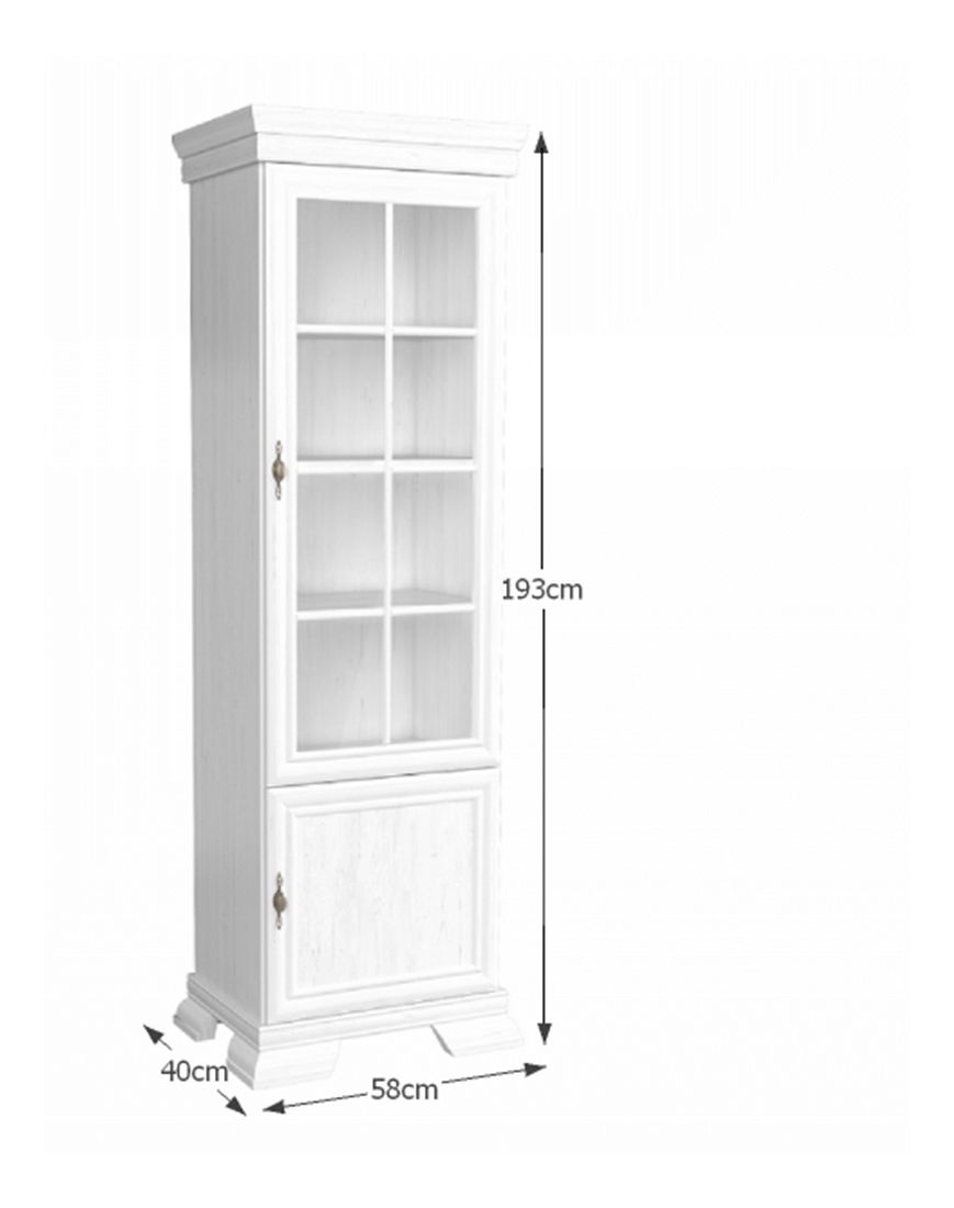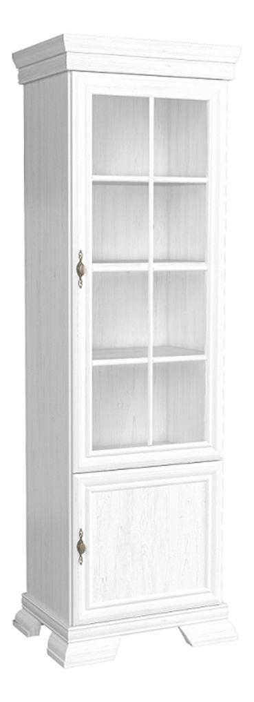 Uska vitrina Kraz s ostakljenim vratima postat će prekrasan detalj u vašem dnevnom boravku, blagovaonici ili radnoj sobi. Isporučuje se u boji bor andersen.