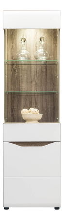 Elegantna jednodijelna vitrina s ladicom i vratima. Stakleni dio se nalazi u gornjem dijelu. Moguće je dokupiti LED rasvjetu.