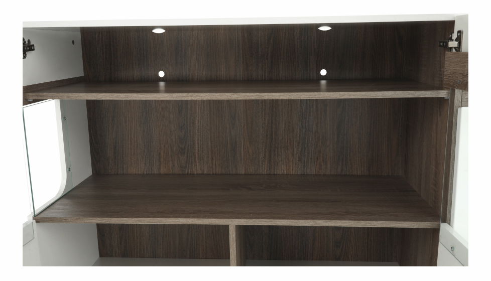Luksuzan namještaj izrađen od laminirane iverice otporne na ogrebotine, vlagu i visoke temperature. Prednji dijelovi su izrađeni od MDF ploče bijele boje s visokim sjajem HG. Moguće je dokupiti LED rasvjetu.