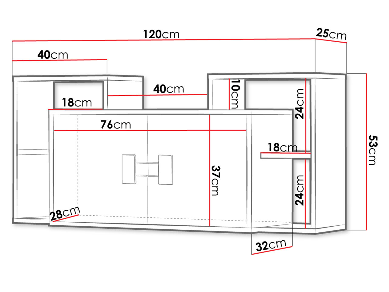 Zidna vitrina je idealan izbor za one koji traže udobnost i stil. Dimenzije: širina: 120 cm, visina: 53 cm, dubina: 32 cm. Izvedba: 16 mm debela laminirana ploča, ABS obruba 0,5 mm, panti bez sustava zatvaranja, ručke: crna plastika (visina i širina 10 cm). Jamstvo: 24 mjeseca.