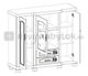 Vitrina rustikalnog dizajna u sredini ima manja ostakljena vrata.