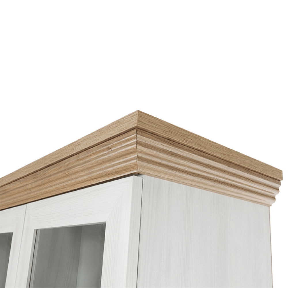 Vitrina Regor u engleskom stilu. Isporučuje se u kombinaciji boja bijeli bor norveški + divlji hrast.