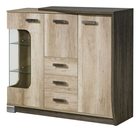 Ormarić s vitrinom Roverdon sa staklenim policama u kombinaciji motiva drva i stakla. Dostupan u lijevoj i desnoj varijanti.