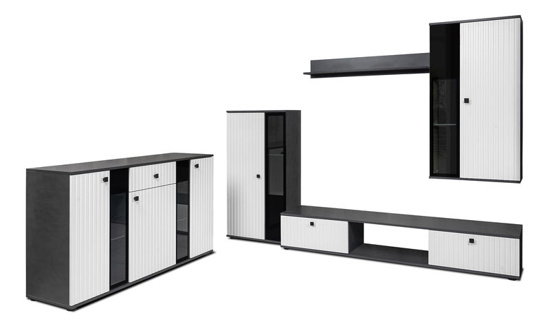 Vitrina iz linije namještaja Saul podijeljena je na tri djela, od kojih svaki dio ima jednu policu. Preporučujemo dokupiti rasvjetu iz našeg web shopa.