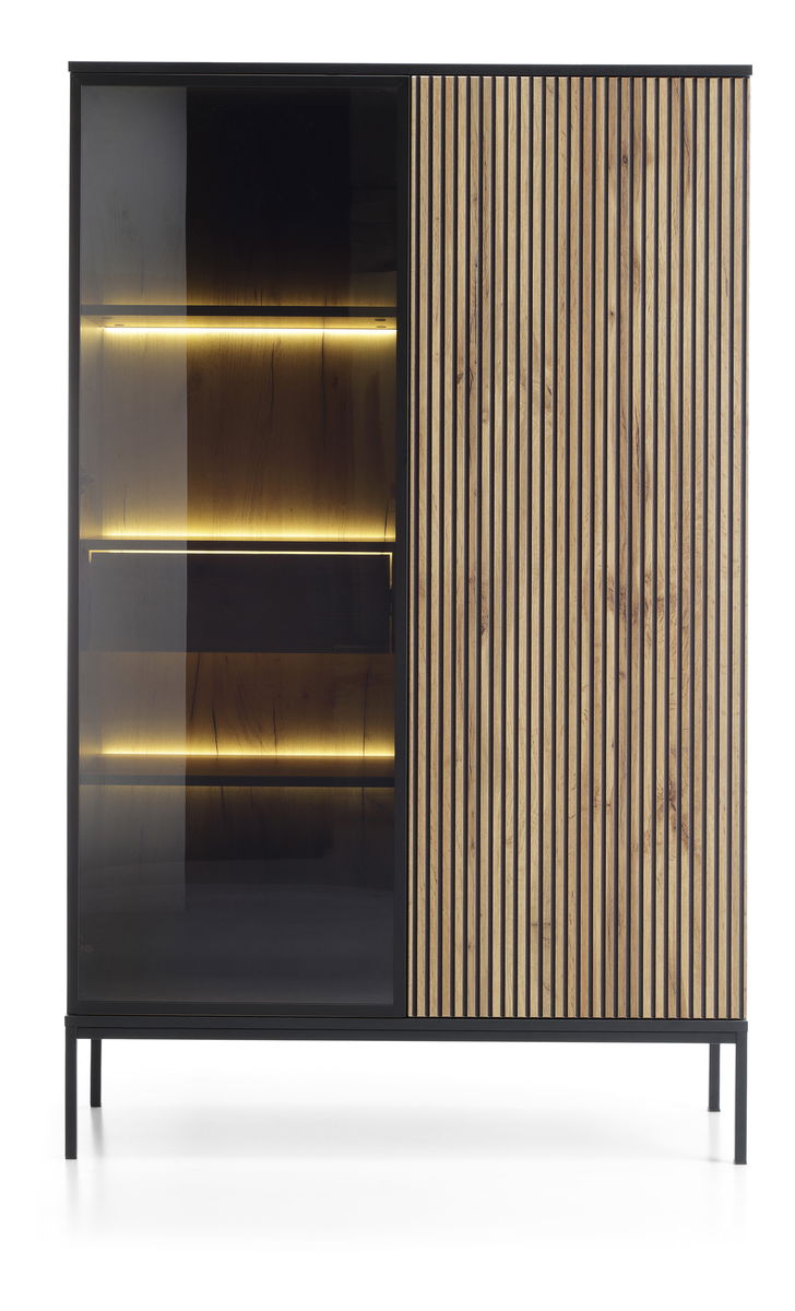 Vitrina Silvano WTSZ104 (crna + hrast wotan) (s LED rasvjetom)