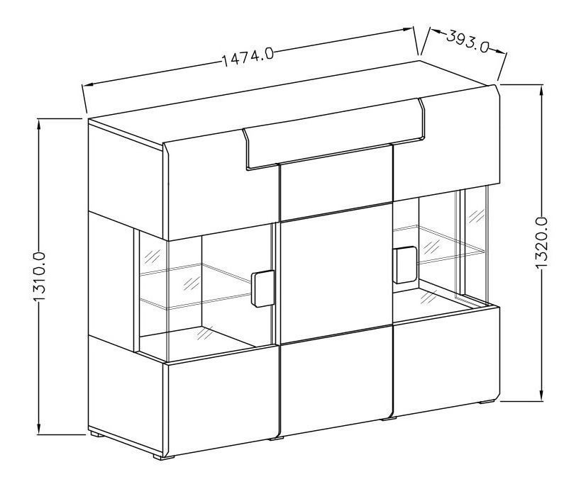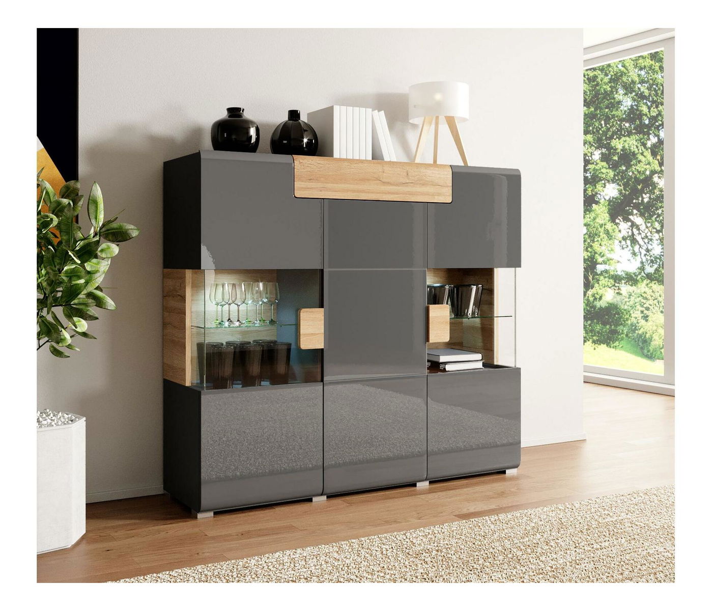 Vitrina Tamie Typ 46 (tamnosiva + hrast)