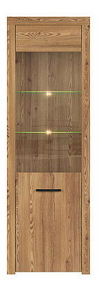 Moderna vitrina uključuje 1 djelomično ostakljena i 1 puna vrata. Maksimalna nosivost svake police je do 4 kg.