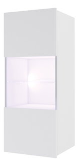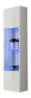 Zidna vitrina Brolani BR11 (bijela + bijeli sjaj) (s plavom LED rasvjetom)