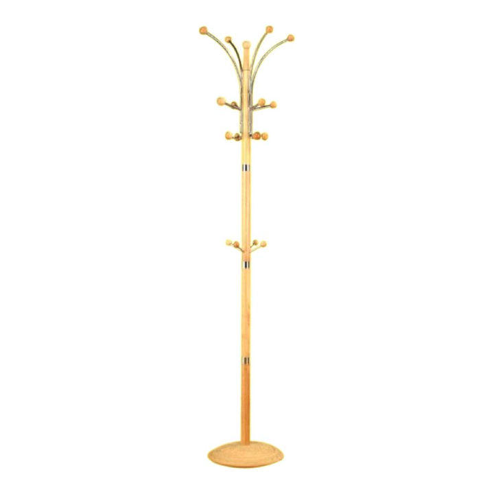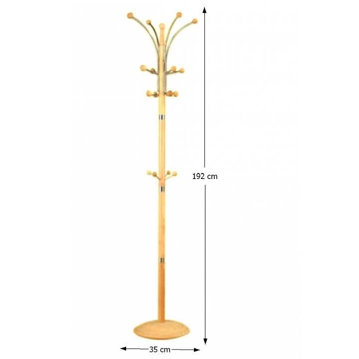 Vješalica jednostavnog dizajna s okruglim postoljem koje jamči stabilnost. Izrađena je od laminirane iverice u boji bukve.