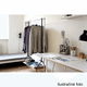Vješalica prikladna za spavaću sobu za odlaganje sezonske odjeće. Izrađena od nehrđajućeg čelika u kombinaciji s čvrstom plastikom.