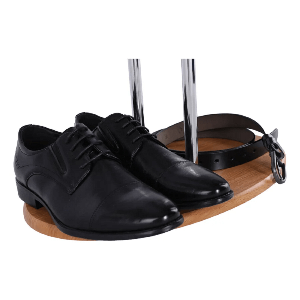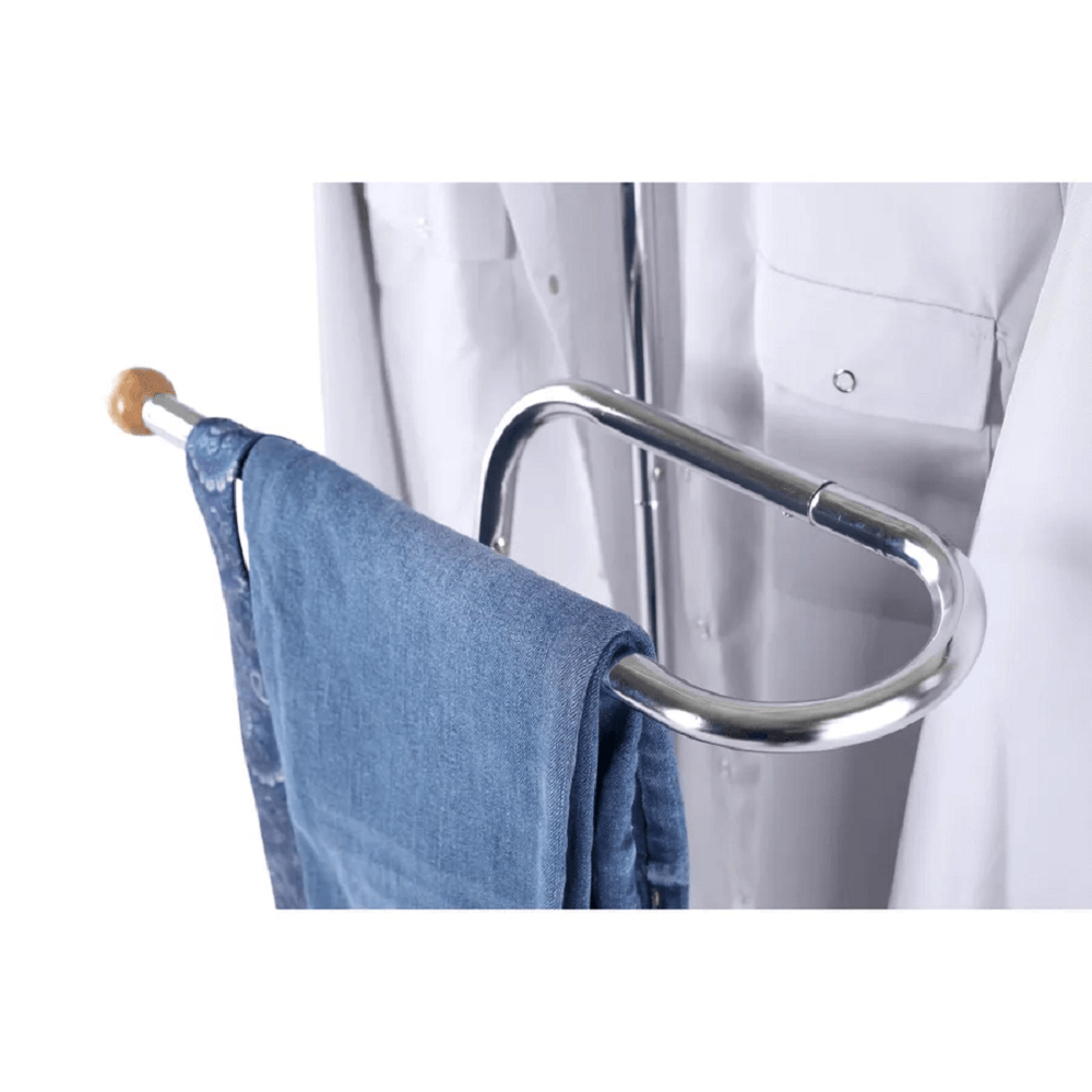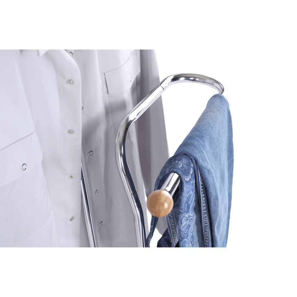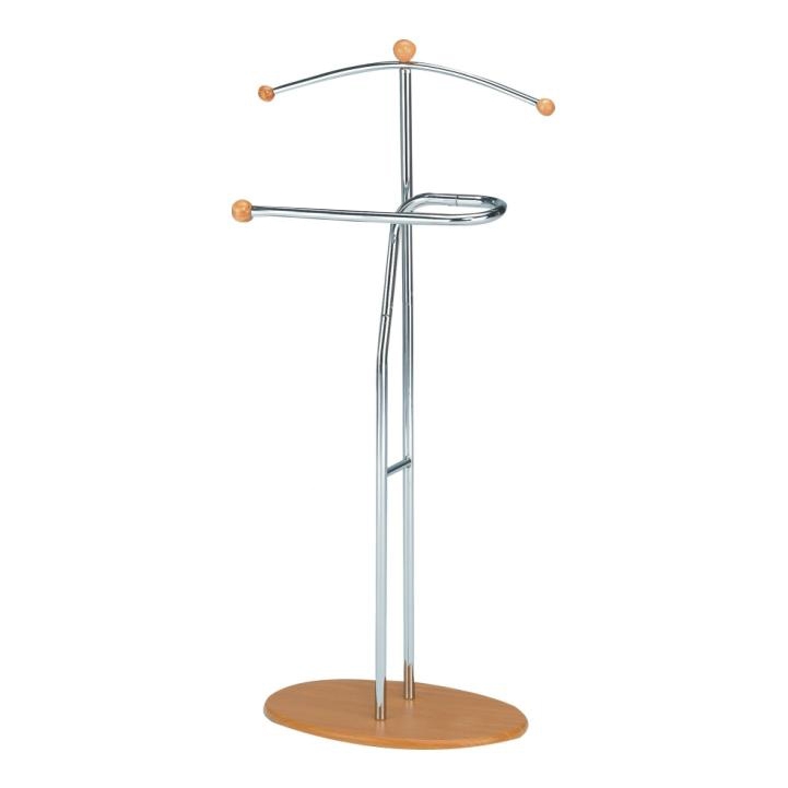 Vješalica za odlaganje odjeće i dodataka u boji bukve.