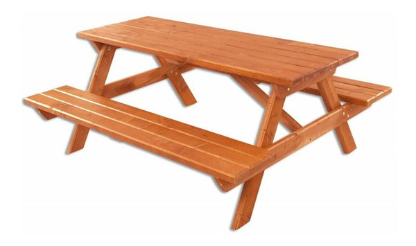 Vrtni stol čvrsto spojen s dvije klupe od kvalitetnog drva smreke u boji johe.