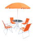 Vrtni set ODELO sastoji se od 4 stolice, okruglog stola i suncobrana. Izrađen je od kvalitetnih materijala poput poliesterske tkanine, metala i stakla.