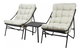 čelična konstrukcija s praškastim premazom,jastuci izrađeni od olefinske tkanine, punjeni poliesterskom pjenom,jastuci bez patenta,jednostavna i brza montaža,set je idealan za terasu, balkon i vrt.Preporučuje se zaštititi od promjenjivih vremenskih uvjeta (kiša, snijeg, mraz).