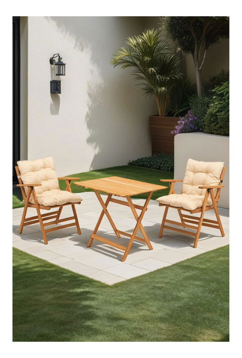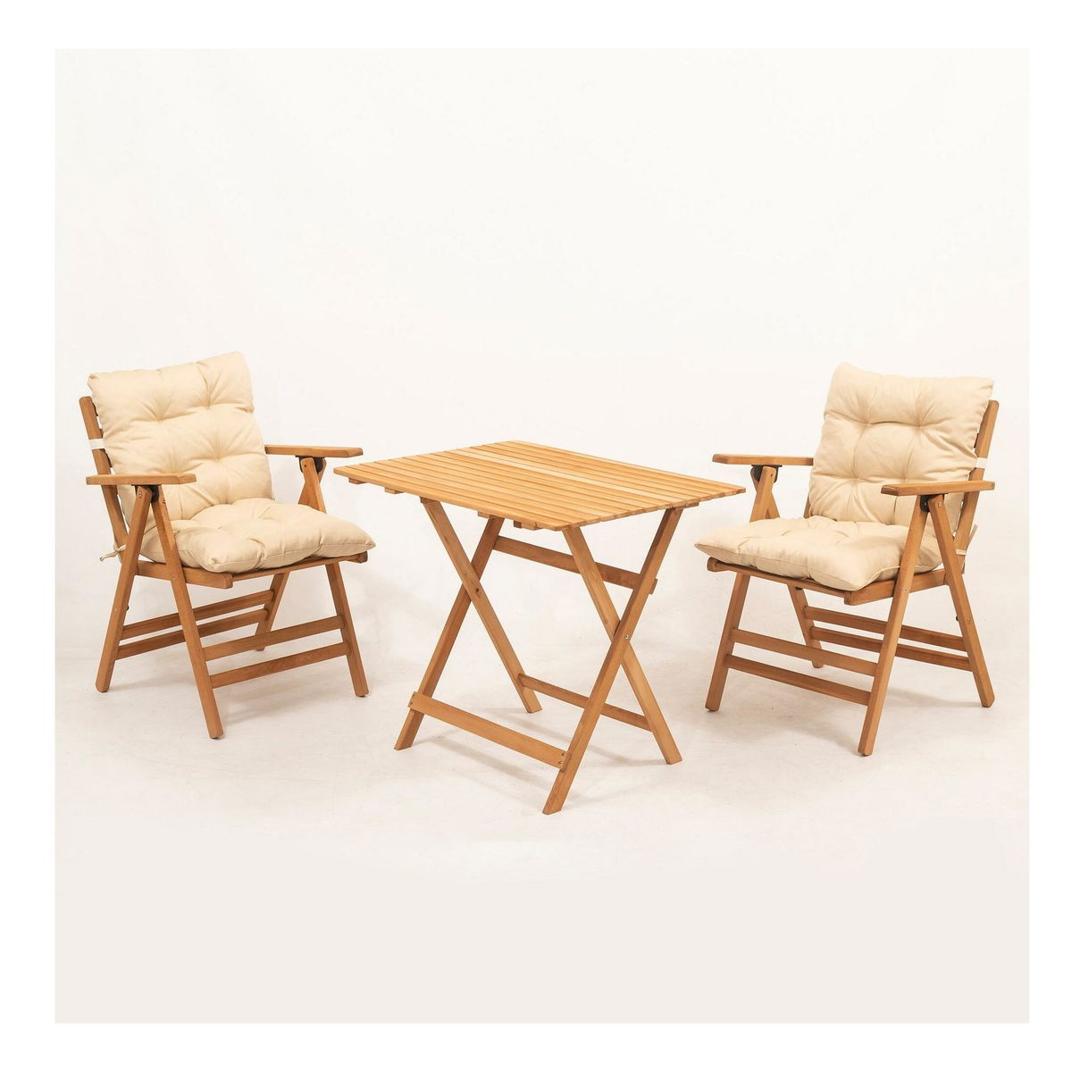 Vrtni set stol i stolice Kikadu 2 (prirodna + krem) (za 2 osobe)