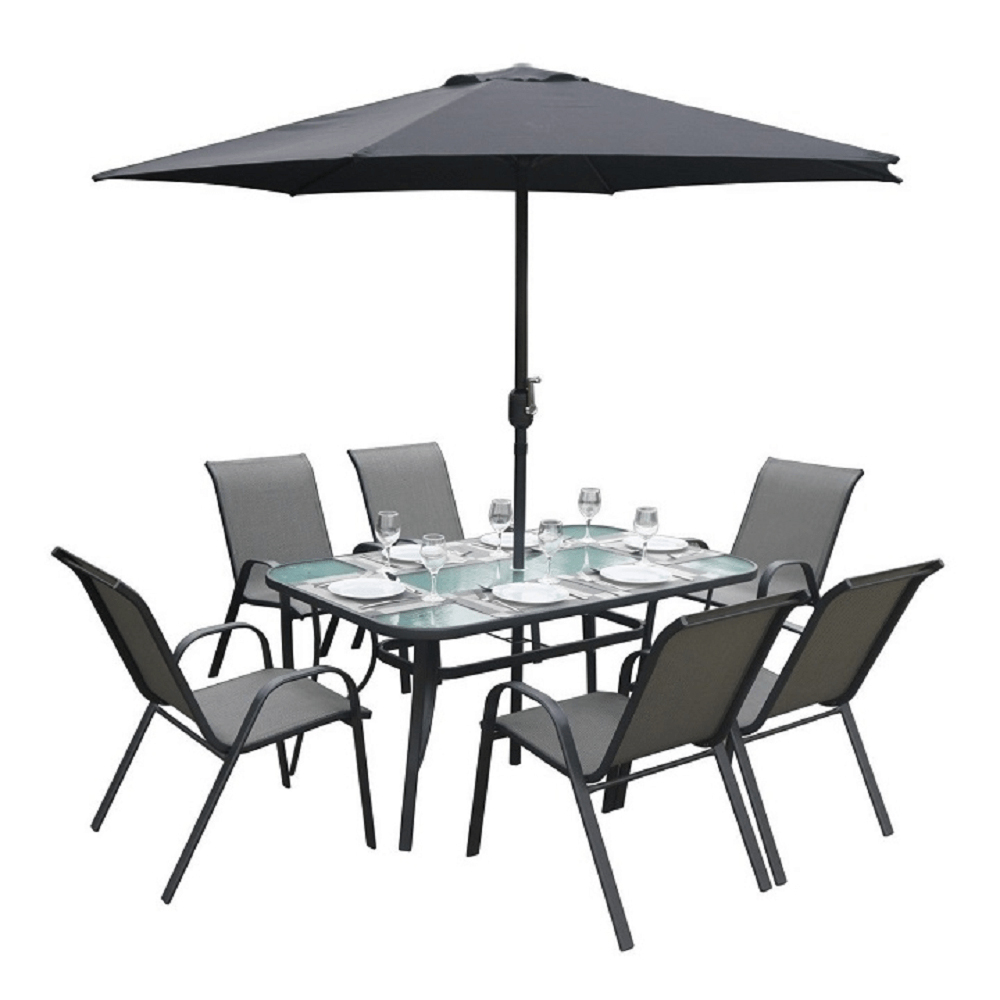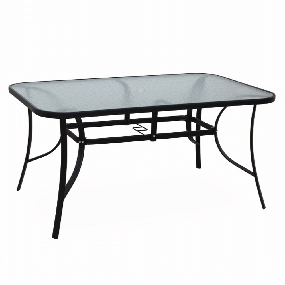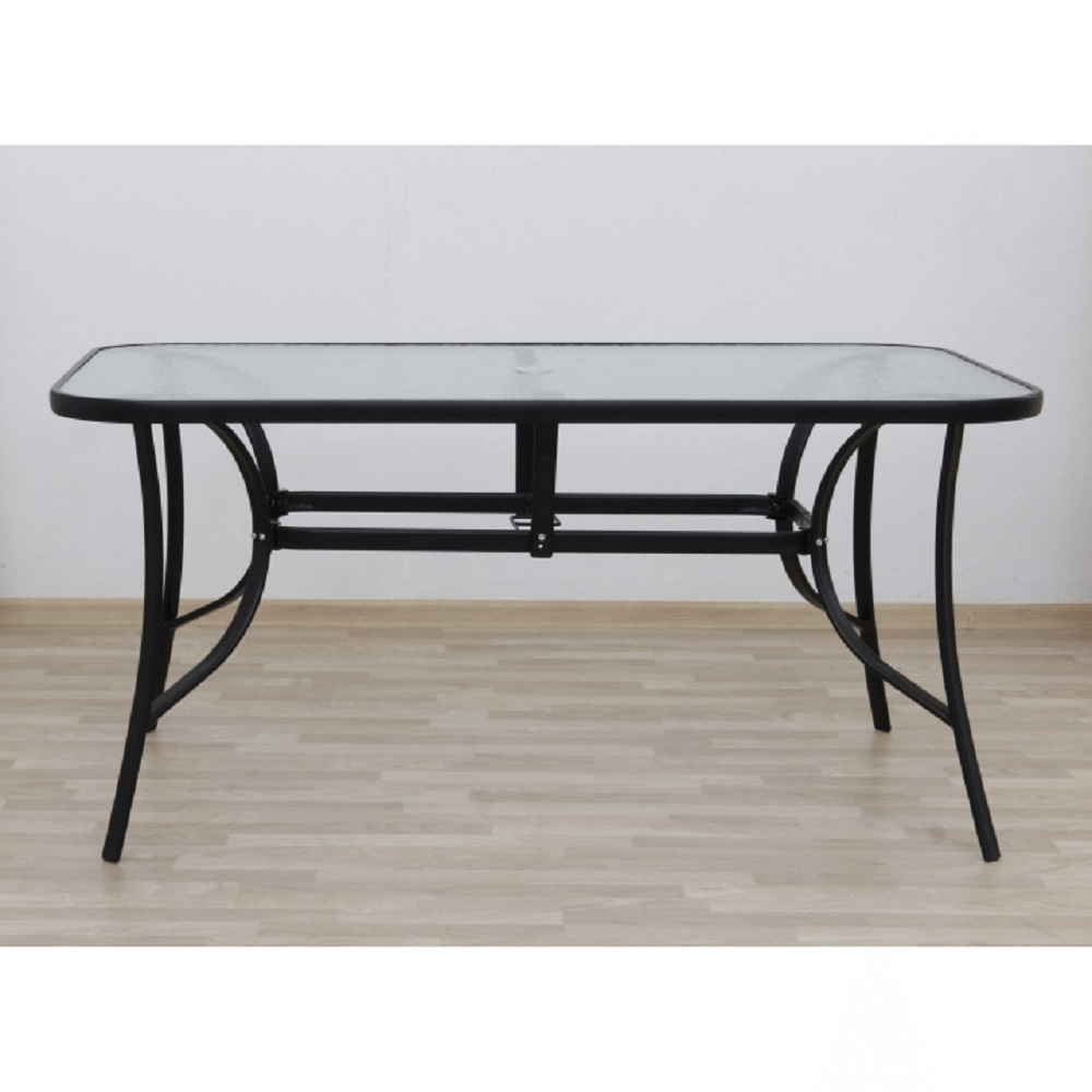 Blagovaonski stol PASTER za terasu ili vrt izrađen je od kvalitetnog kaljenog stakla i crnog čelika. Čvrsta konstrukcija osigurava stabilnost stola. Stol je namijenjen za 6 osoba.