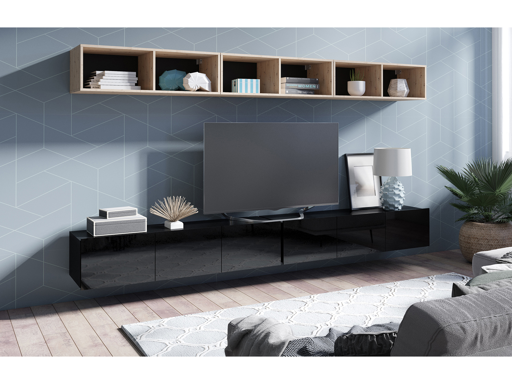 Zidna polica Calabria P100 (hrast artisan + crna)