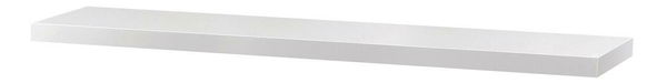 PrikazModerna minimalistička polica u izvedbi bijeli visoki sjaj. Okvir je od MDF-a, površina sjajni laminat. Paket sadrži policu, metalni držač, vijke i tiple za montažu. Nosivost police je 5–15 kg ovisno o vrsti nosivog zida.