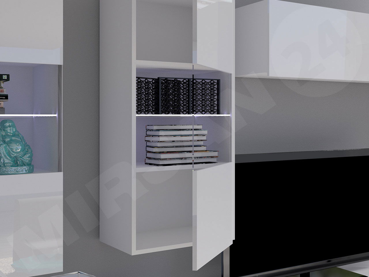 Zidna vitrina Brolani BR11 (crna + crni sjaj) (s plavom LED rasvjetom)