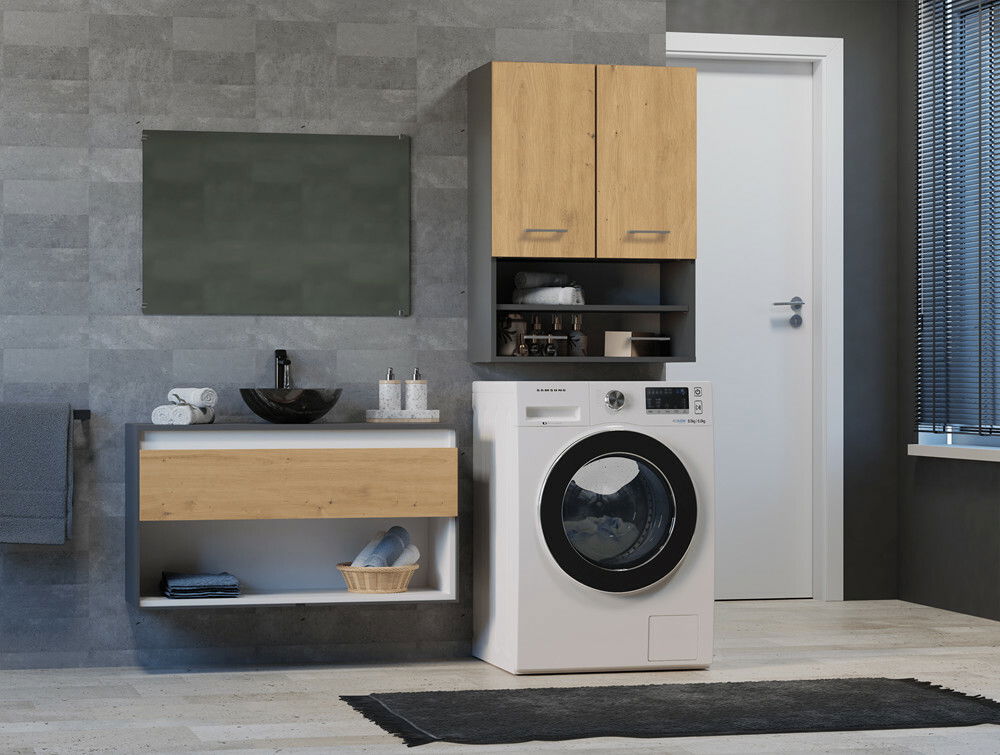 Zidni kupaonski ormarić Perdieron 1 (antracit + hrast artisan)