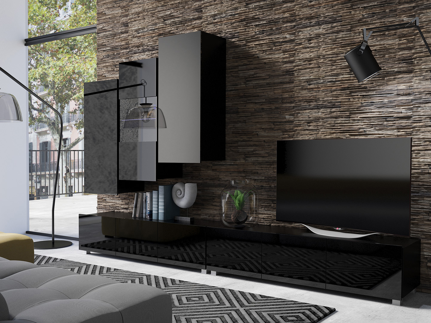 Zidni ormarić Calabria (crna mat + sjaj crna) (bez rasvjete)