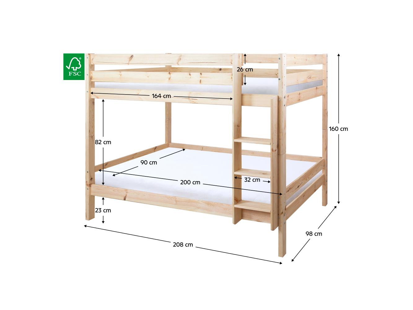 Dječji krevet na kat 90 cm Braceaba (smrek masiv) (sa podnicom)